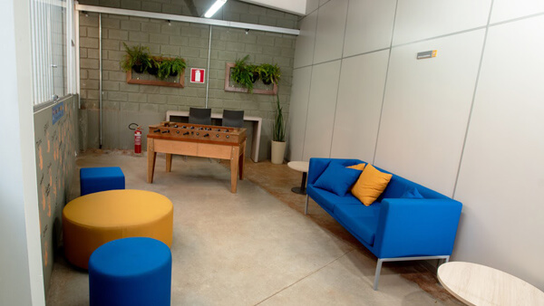 Contamos com uma sala de descompressão, onde os colaboradores podem fazer uso da mesma para momentos de descanso, de leitura, um trabalho que necessite de maior concentração ou ainda reuniões, conversas individuais, e dinâmicas de grupo, etc.