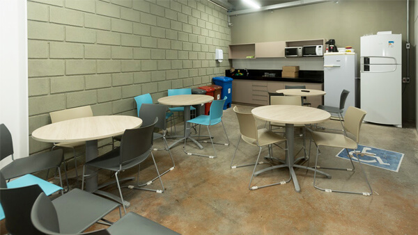 Contamos com uma sala de descompressão, onde os colaboradores podem fazer uso da mesma para momentos de descanso, de leitura, um trabalho que necessite de maior concentração ou ainda reuniões, conversas individuais, e dinâmicas de grupo, etc.